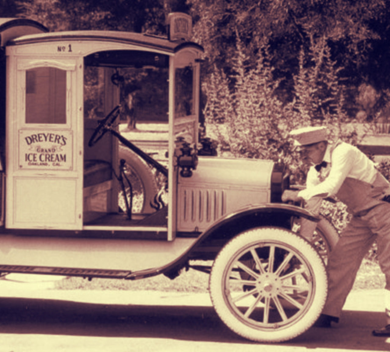 Now that's what we call mass production. The ice cream churn is invented, and now we an make ice cream by the bucket