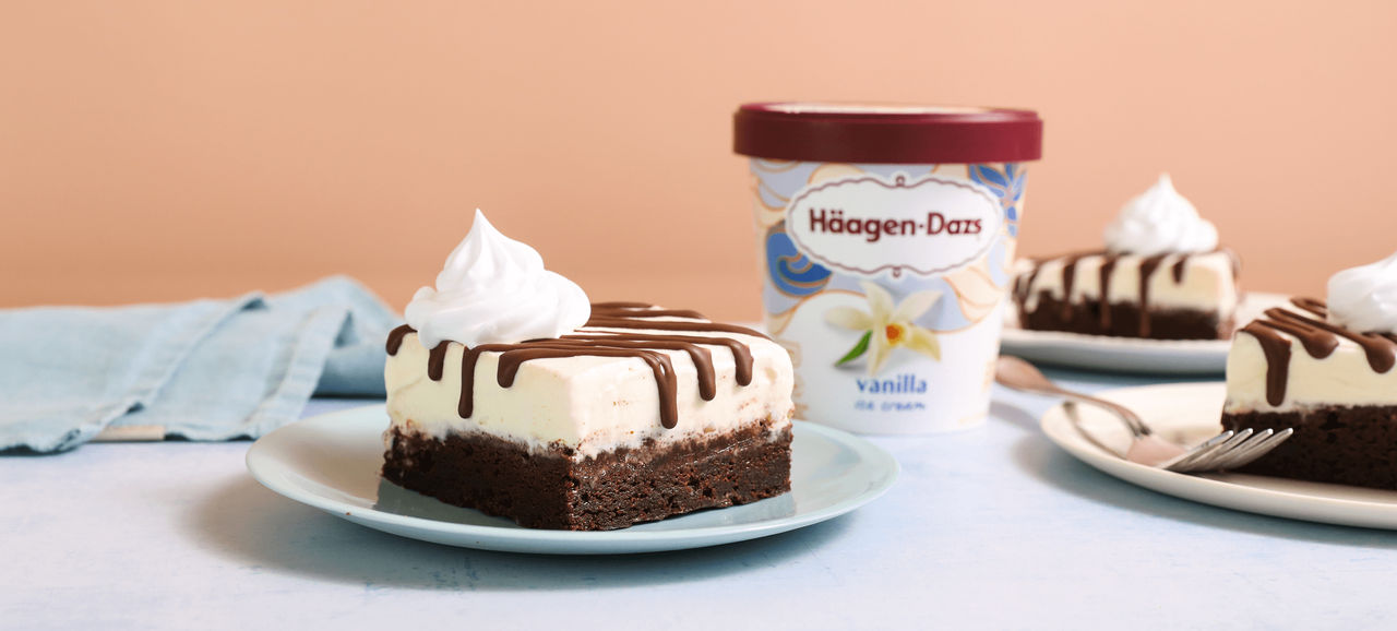 Let ice cream soften on the counter until it’s spreadable. Spread over brownies, and return to the freezer for 2 hours.